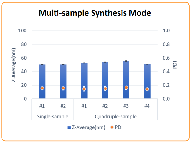 - 可調節粒徑大小、均質性高、PDI低