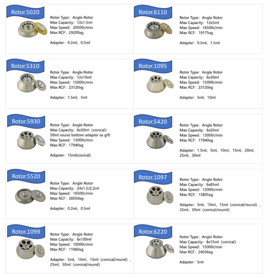 - 提供多種轉子選擇,容量大、速度高