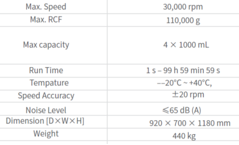 產品特點 採用超速離心密封技術,真空度高 航太科技用於轉子不平衡檢測,結合新演算法,快速識別並防止嚴重失衡 軸承散熱設計延長馬達壽命 獨特驅動設計,轉子運轉平穩,降低失衡狀況,提高安全性 轉子安裝採用免工具卡槽式設計,快速更換轉子 新型碳纖維轉子,重量輕、耐腐蝕 自動轉子識別系統,降低設定錯誤風險 規格 多種轉子選擇