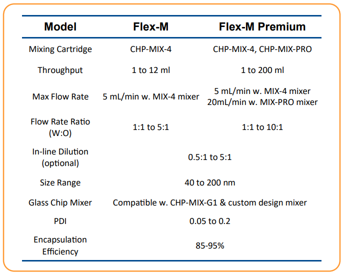Flex-M Premium 提供更寬的通量範圍,從 1 毫升~ 200 毫升,可滿足從早期篩選到動物研究的各種應用。↴