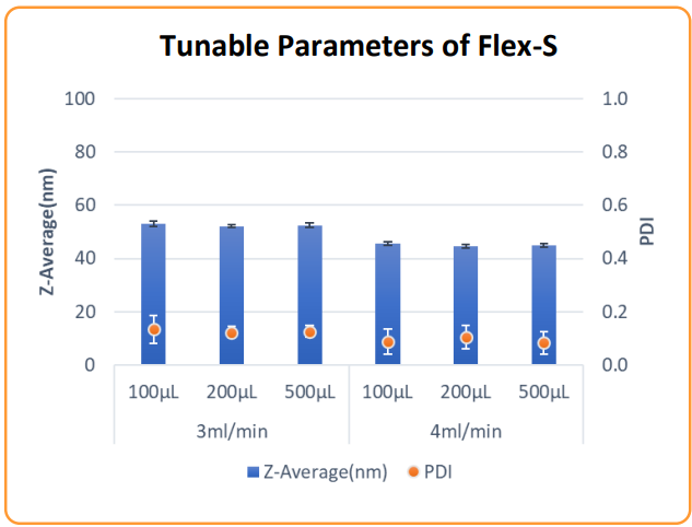 - 可調節粒徑大小、均質性高、PDI低