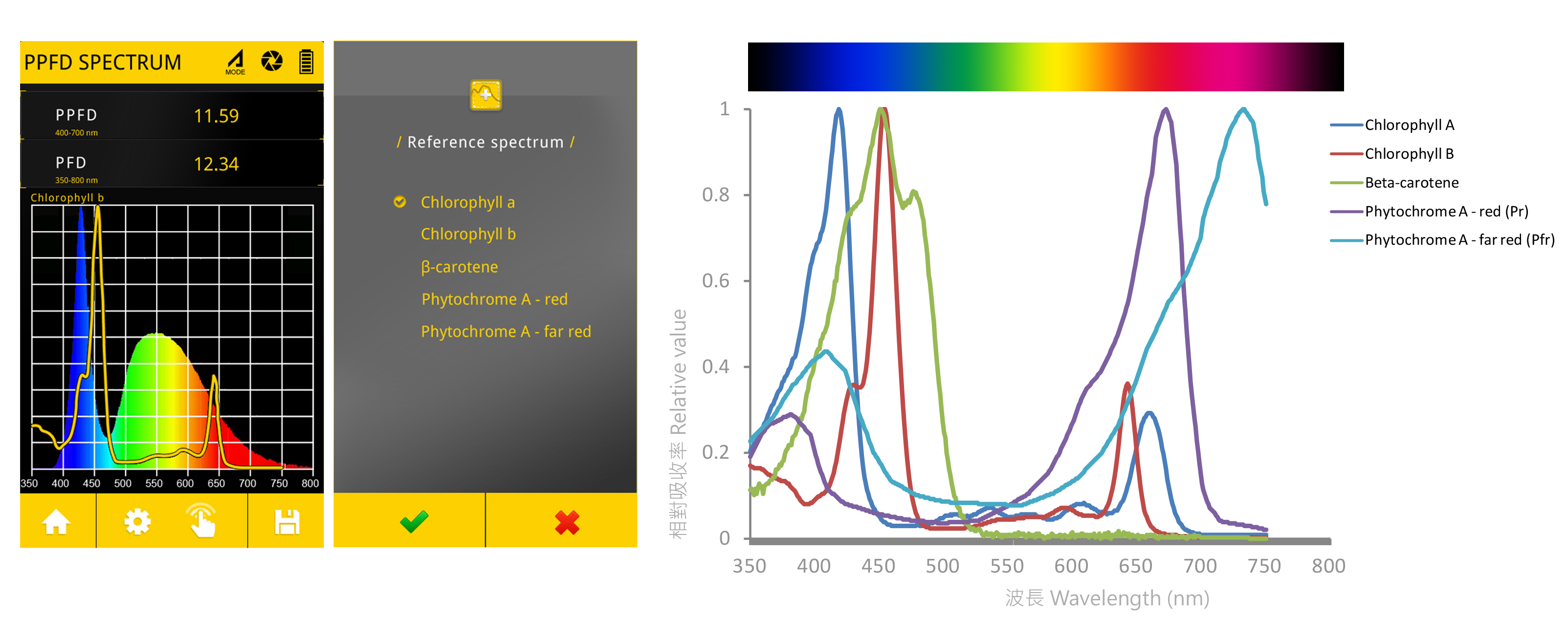 - 數值和光譜圖顯示工具,幫助您了解植物與光源之間的關係