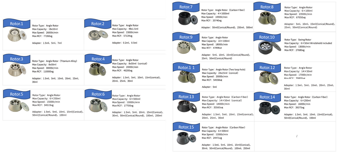 產品特點 採用超速離心密封技術,真空度高 航太科技用於轉子不平衡檢測,結合新演算法,快速識別並防止嚴重失衡 軸承散熱設計延長馬達壽命 獨特驅動設計,轉子運轉平穩,降低失衡狀況,提高安全性 轉子安裝採用免工具卡槽式設計,快速更換轉子 新型碳纖維轉子,重量輕、耐腐蝕 自動轉子識別系統,降低設定錯誤風險 規格 多種轉子選擇