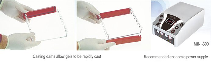 *快速製膠條可快速鑄造凝膠。搭配 Mini Pro 300伏特 電源供應器更經濟便利