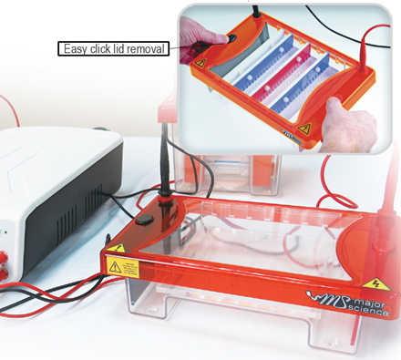 此小型水平電泳系統特別適合中小型凝膠及短片段 DNA 的分析需求。