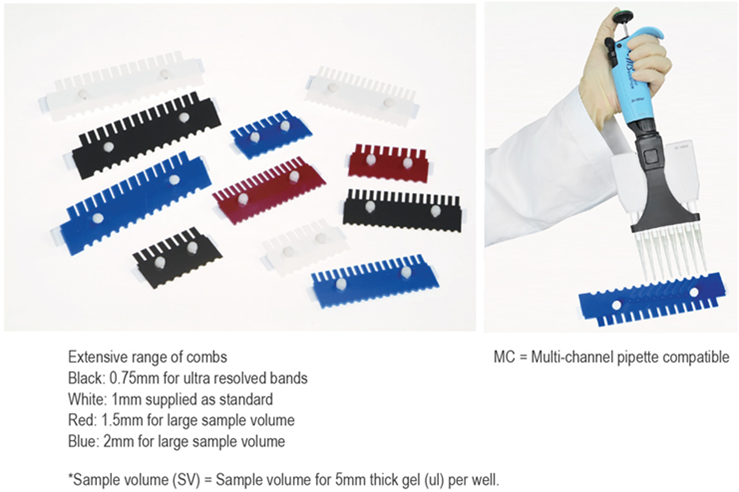| ME15-7-10-15 | 中型水平電泳系統,內含 150x70, 100 & 150mm UV 托盤, 2x20 樣本齒梳1mm厚,附sample loading 樣本槽指示貼紙及快速製膠條 |