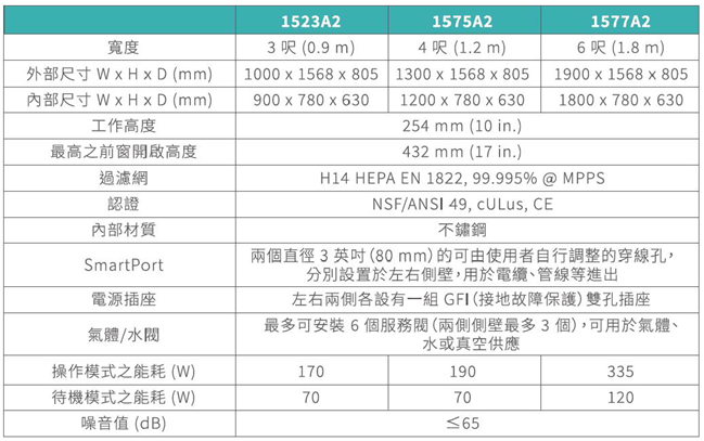 結合防護性能、能源效率與操作便利,符合 NSF/ANSI 49 標準,提供 3、4、5、6 英尺四種寬度。以「4C」全面提升: